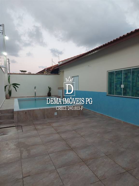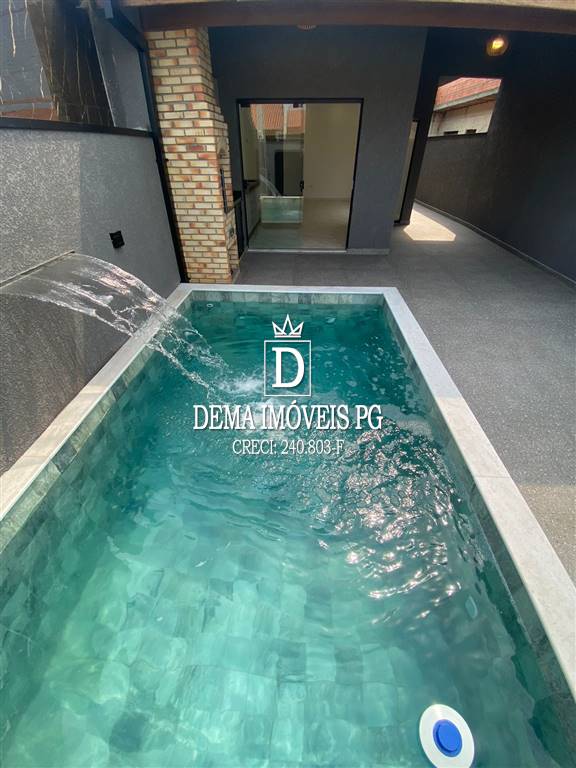 Casa com 2 dormitórios sendo 1 suite, sala com 2 ambientes, cozina, banheiro, área de serviço e piscina com cascata inox,