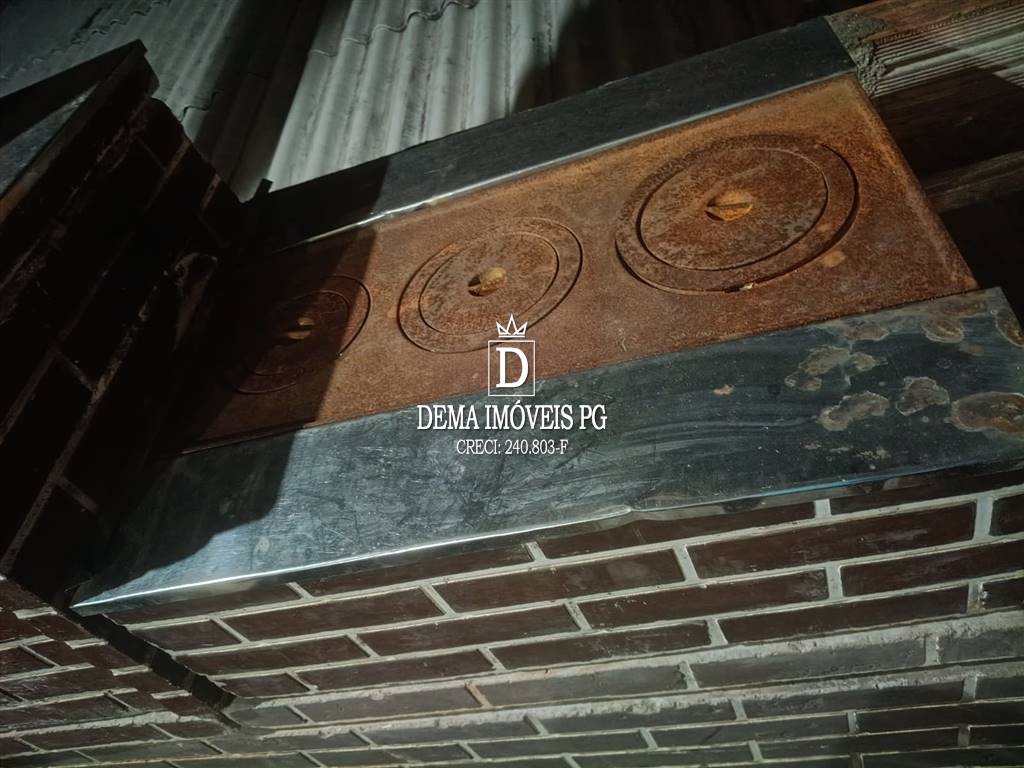 A parte de cima do imóvel conta com churrasqueira, fogão a lenha e uma mesa espaçosa, ideal para reunir amigos e familiares em momentos de descontração e lazer.
