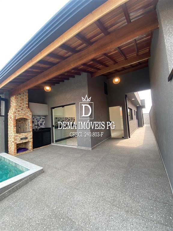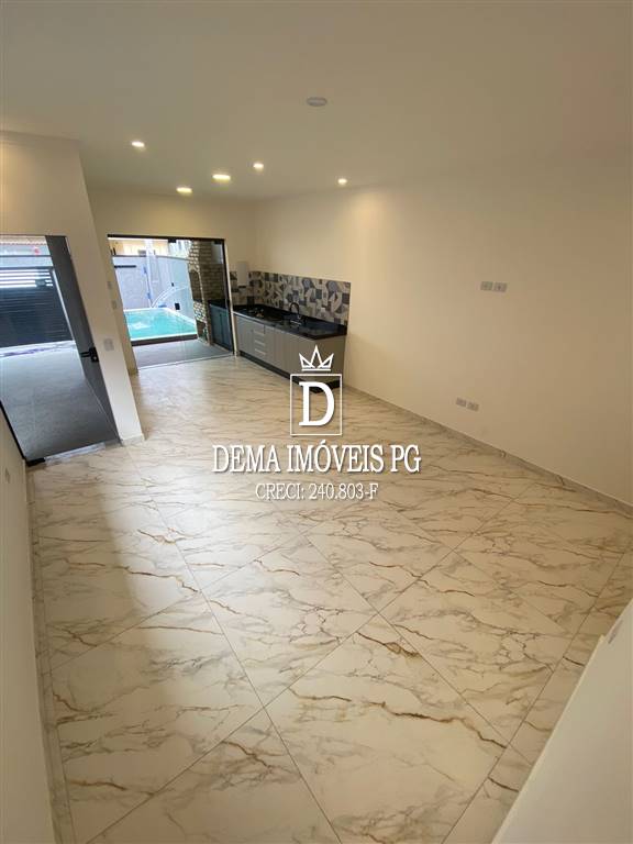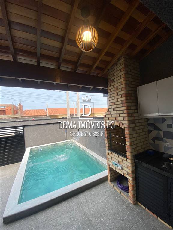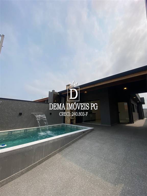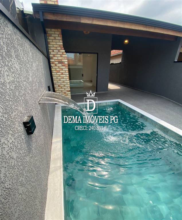 Casa com 2 dormitórios sendo 1 suite, sala com 2 ambientes, cozina, banheiro, área de serviço e piscina com cascata inox,