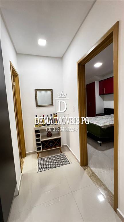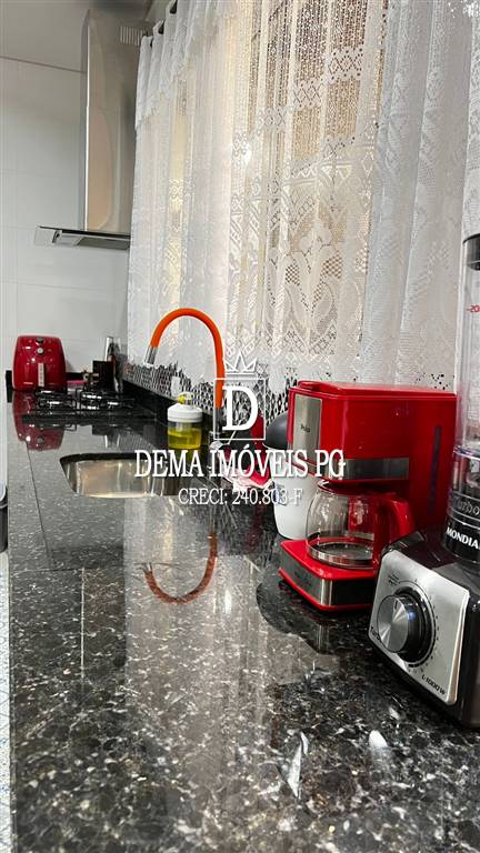 Cozinha, sala, balcão americano, lavabo, 1 suíte, área de serviço coberta, quintal privativo e garagem para 1 carro.